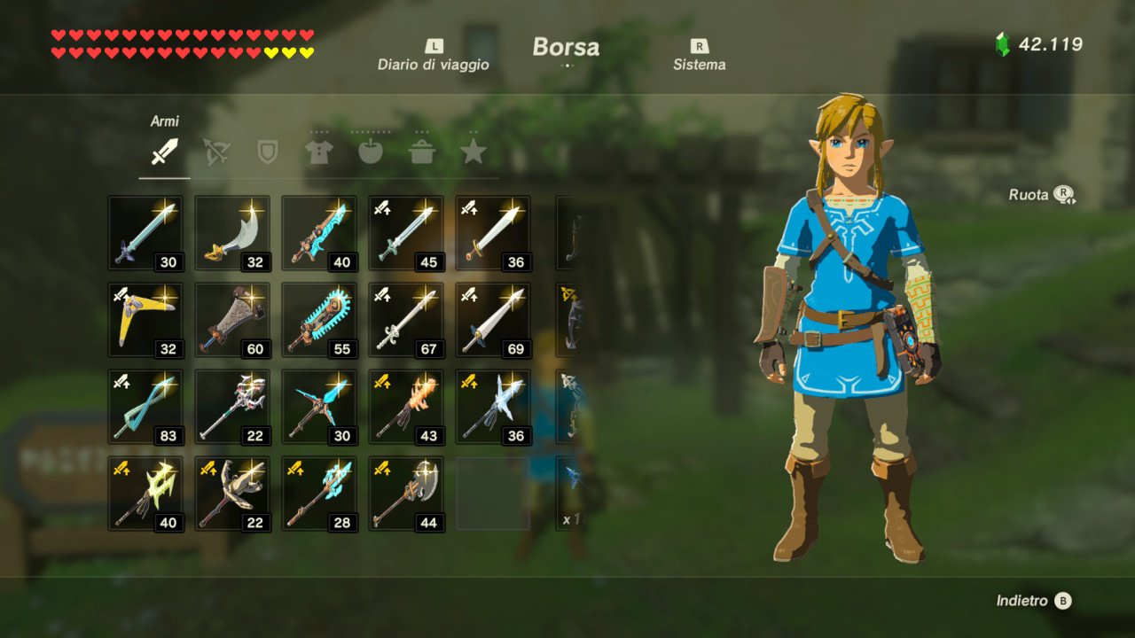 Later in the game, you’ll get the ability to expand your inventory slots in exchange for Korok seeds. You should see what kind of equipment you tend to have the maximum amount of the most to determine the first one to expand. This was shields for me, but it could be swords or bows for you.